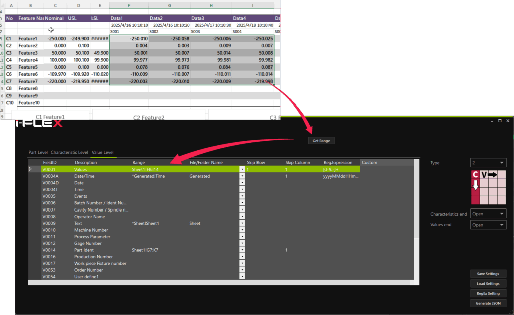 i-FLEX supports both column-oriented and row-oriented data layouts. Even when there are blank cells between rows or columns, or when the final row or column varies depending on inspection conditions, the system accurately captures all available data up to the last row or column.