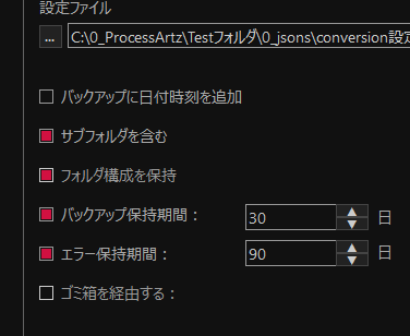 - 処理済みファイルとエラーファイルの保持期間の設定