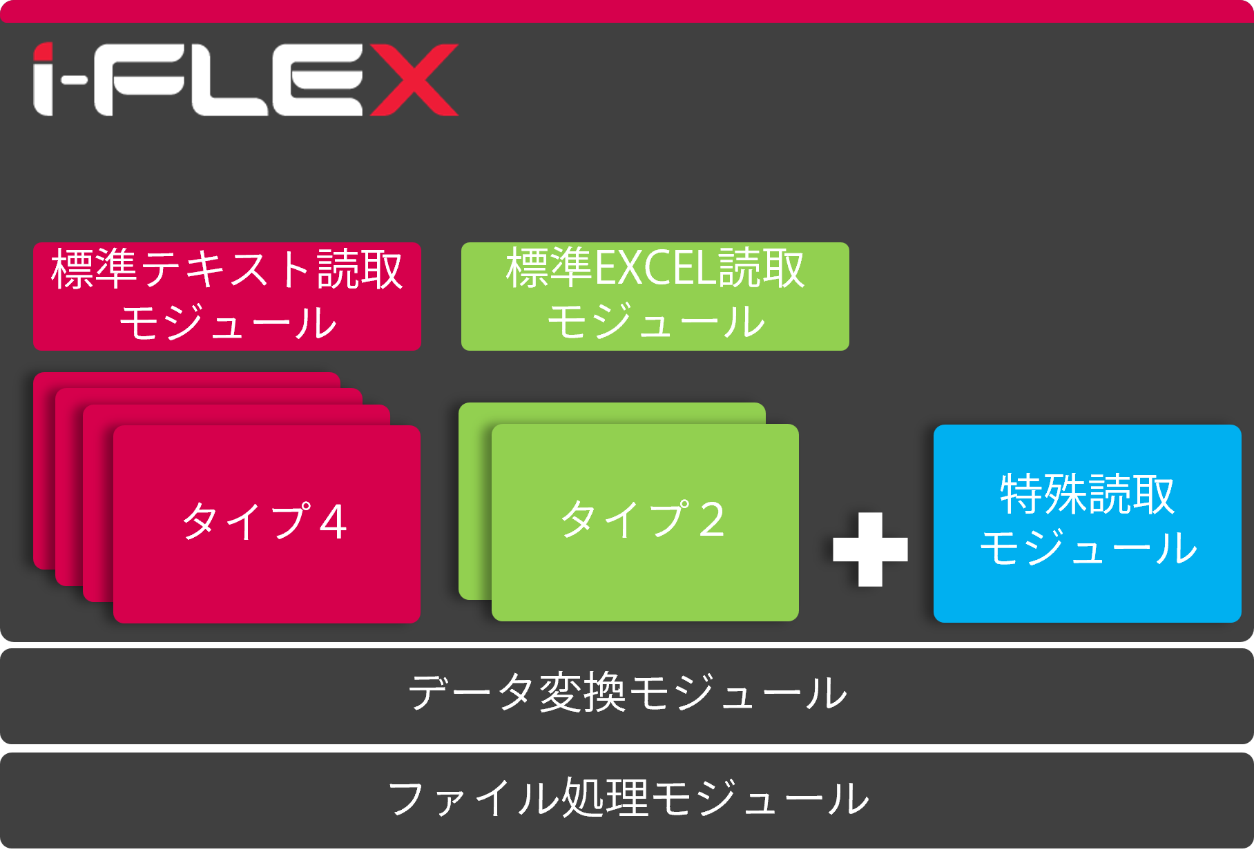 i-Flexの標準モジュールは多種のフォーマットに対応できるよう設計されていますが、特殊なフォーマット(データの並びに規則性が無い等)には対応する事ができません。